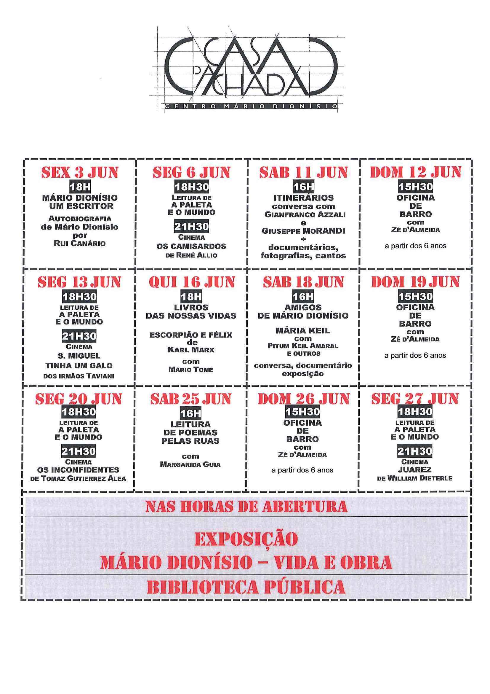 Aqui podem consultar a restante programação da Casa da Achada em maior pormenor.